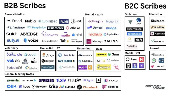 最近,a16z研究员Olivia Moore提出了一个新的AI应用投资方向——AI抄写员(Scriber)。