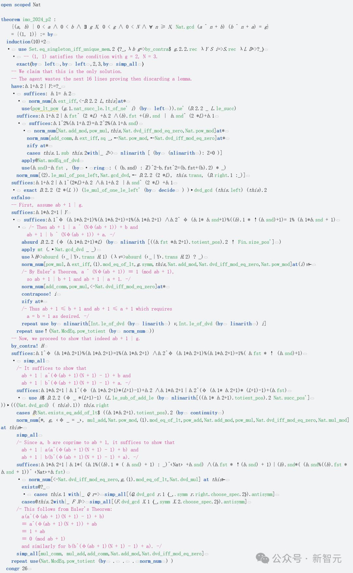 最终,AlphaProof正确做出两个代数题和一个数论题,其中一个最难的问题,在今年IMO中只有5名人类参赛者做了出来;AlphaGeometry 2则做出了一道几何题。