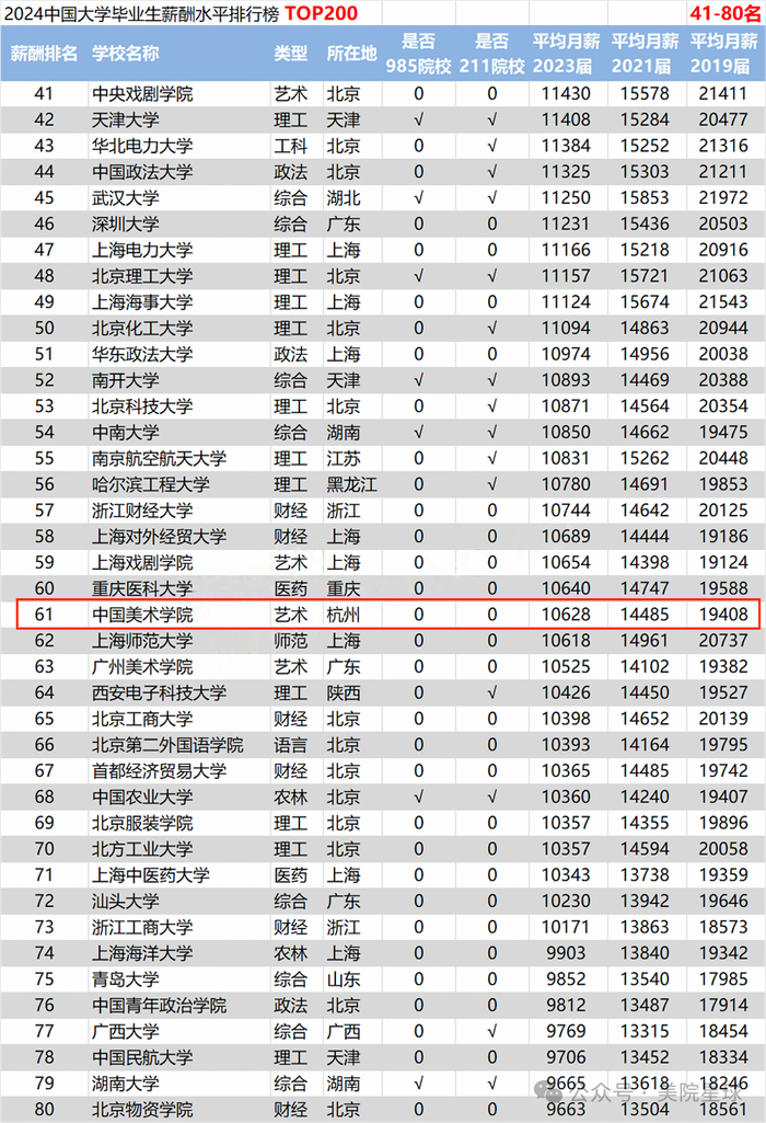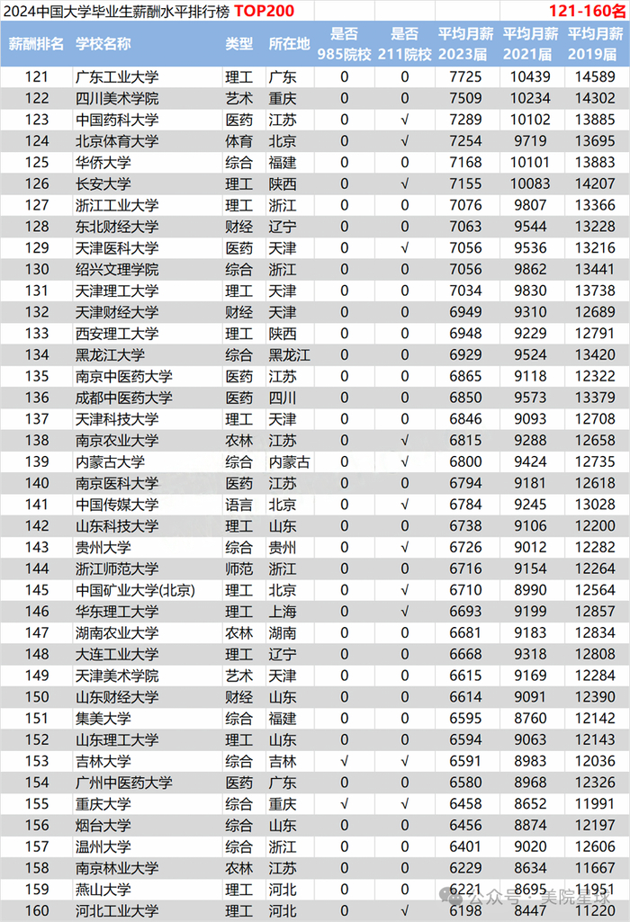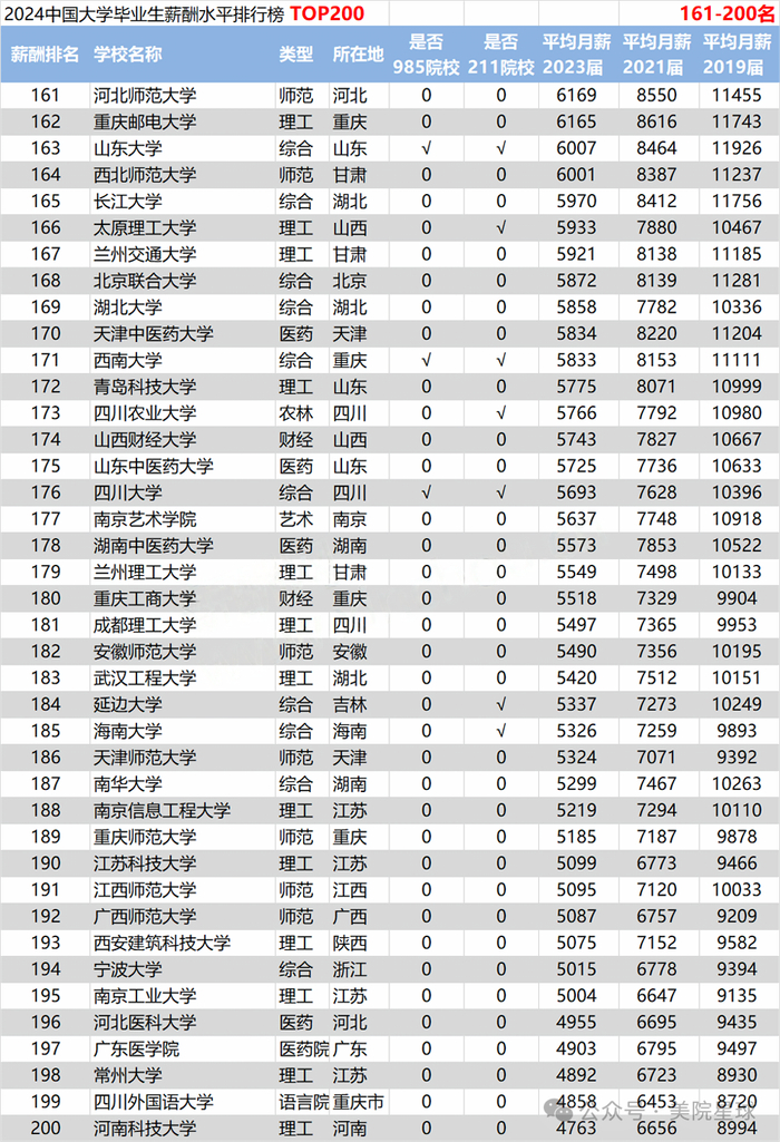 下图为2024年全国高校毕业生薪酬排行榜TOP200: