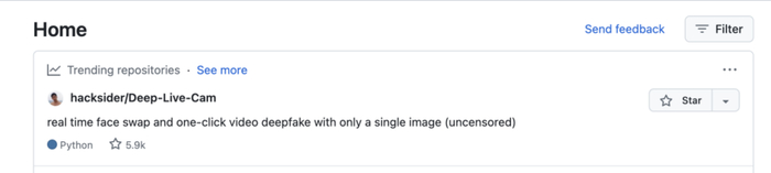 8月9日晚到8月10日早晨,一个项目突然在GitHub上火起来:Deep-Live-Cam,使用一张他人的照片,就能实现在直播流中的实时换脸,而且效果优秀。