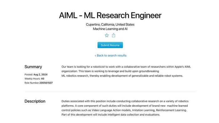 我们团队正在寻找一位机器人专家,加入苹果公司人工智能与机器学习(AIML)组织的研究团队。这个团队的工作是利用并扩展突破性的机器学习在机器人领域的应用,目标是开发出能够广泛应用且性能稳定的机器人系统。