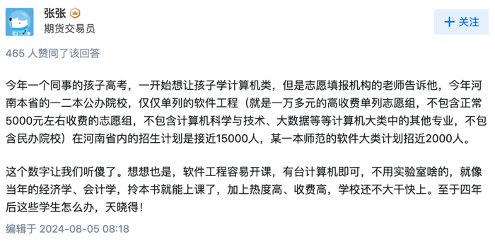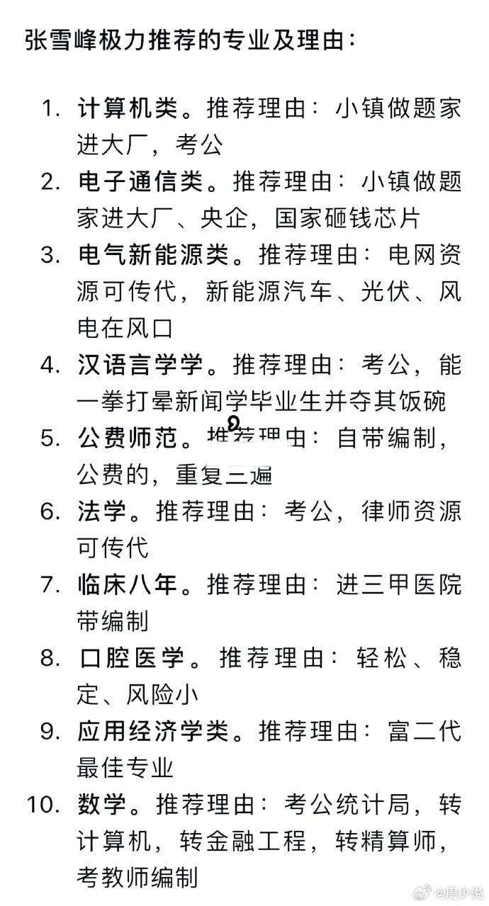 是不是大家都看了张雪峰老师对普通家庭孩子专业报考建议了: