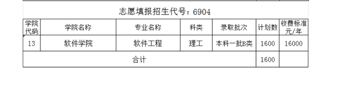 此外还有中北大学的软件工程专业计划招生 1600,学费 16000/年: