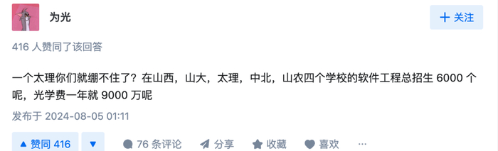 最近看了一则新闻“如何评价2024太原理工大学(211)软件工程招60个班,接近2k人?”。