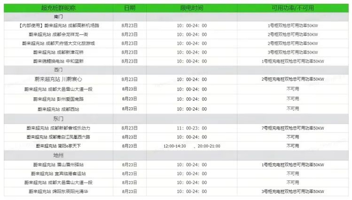 深耕能源的蔚来深知加电信息准确性对用户的意义。在 APP 上,你可以看到实时换电站营业的情况,蔚来服务群内也会有人工实时发送超充桩和换电站暂停营业的计划表。