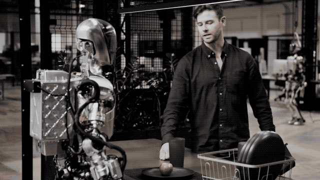 在2024世界人工智能大会上,“青龙”人形机器人用双手缓慢且轻柔地抓起桌面上混合摆放的面包和水果,分类放进左右两个篮筐内,即便是柔软的面包,也不会因为抓力而变形;机器人初创企业Figure和Open AI合作打造的Figure01,凭借一条清理桌面的视频火爆全网,双手可以识别并抓取光滑的玻璃杯、扁形的盘子、圆形的苹果……