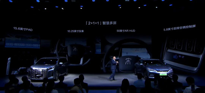 和系列IP一同亮相的还有同名车型“夏”,从现场图片可以见到该车的完成度已经非常高,外观和内饰设计相信已经基本定型,最终呈现给消费者的效果和现场的样车大差不差。但毕竟只是初亮相,比亚迪仅给新车留了10分钟不到的介绍时间,目前已知的要点有几个,包括使用第五代DM插混动力、配备云辇-C控制系统、配备高阶智驾且使用DiLink 150座舱系统等,比亚迪强调该车会在年内上市,并给出了“30万元级”的价格预期。