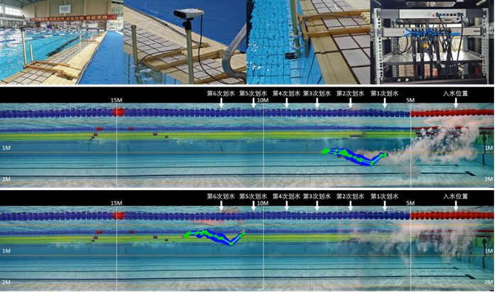 在国家游泳队,科研团队打造了水上水下全程50米3D智能采集与 AI 量化分析系统,多视角智能监测运动员游泳的全过程,包括:出发、途中游、转身、冲刺等技术细节。