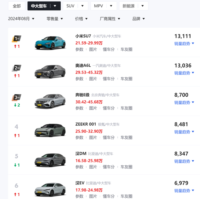 小米SU7可以说是成功的。放眼国内市场,一款新车要想获得上万辆的月销量,需要多年时间的品牌口碑积累,而小米SU7只花了一个季度的时间就完成这一成就,甚至还问鼎8月份中大型轿车市场销量榜。