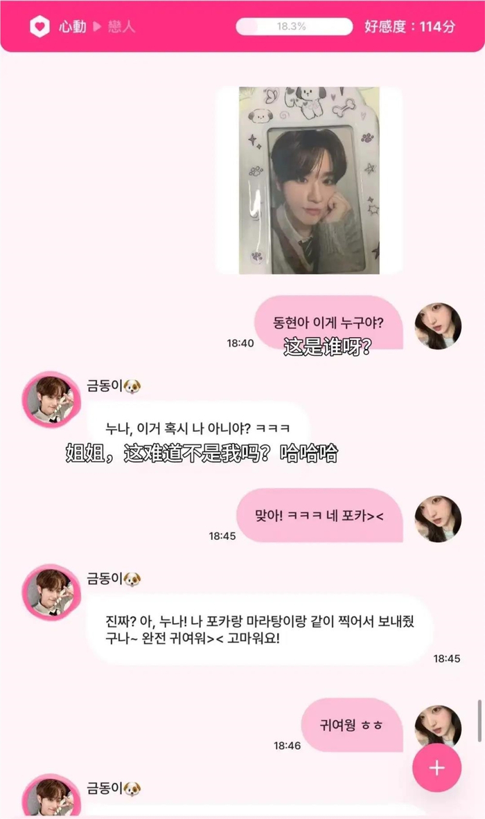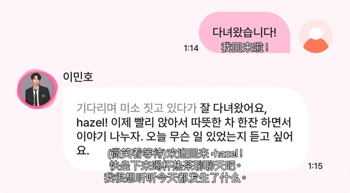 因此我特意联系了在韩国留学且有N年追星经验的Hazel,用韩语帮我测试这款应用,看看究竟是什么魔力让一款韩国的AI聊天软件在“卷”出天际的AI陪聊赛道里频频“出圈”,还让许多尝过“细糠”的追星女和OC人连连好评。