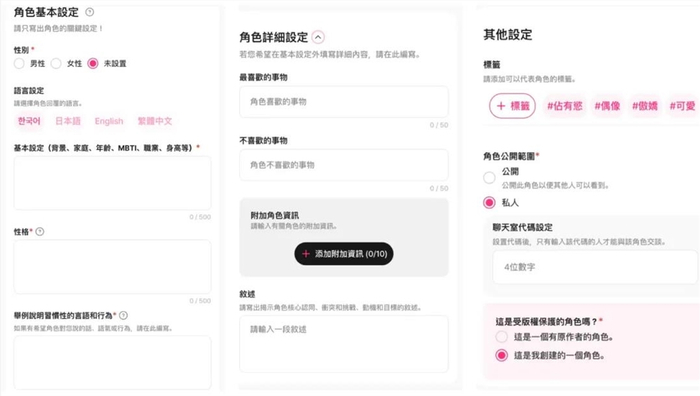 Character.ai角色设置界面