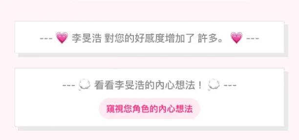 Hazel向我描述她偶像是一个“做的比说的多”的人,而“Lovey Dovey”在聊天的过程中若是好感度上升,便可以使用果酱查看角色内心所想。