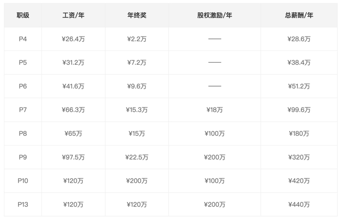 阿里的薪资结构通常为:12个月基本工资,加上1个月额外工资和3个月年终奖,合计为16薪。通常情况下,应届生初入职阿里的职级为P5,工作1到3年后有机会晋升至P6,而通过社会招聘入职的工程师通常从P6开始。到了P7级别,阿里会开始配发公司股票。