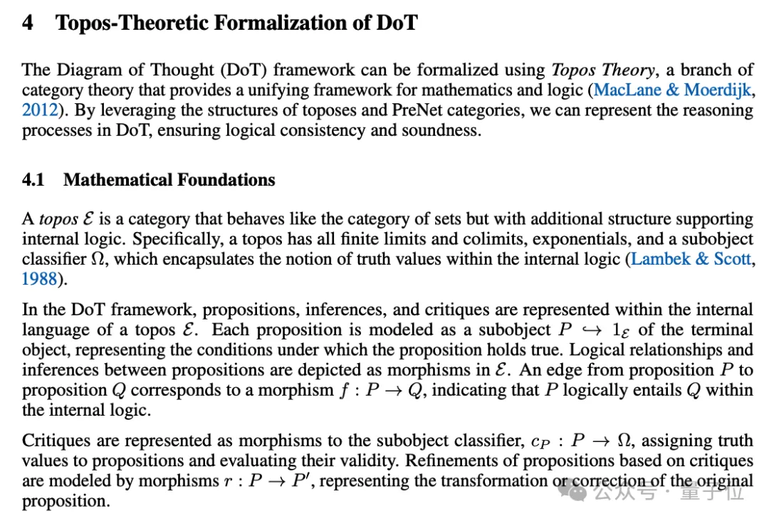 作者还为DoT框架提供了严格的数学基础,利用Topos Theory对推理过程进行了形式化描述。