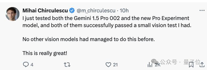 有网友测试了它的视觉理解能力,结果顺利通过,之前难倒了一众视觉模型。