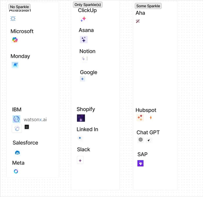 Reddit上还有网友简单统计了一下AI的图标,Sparkle or No Sparkle。