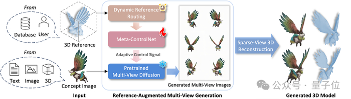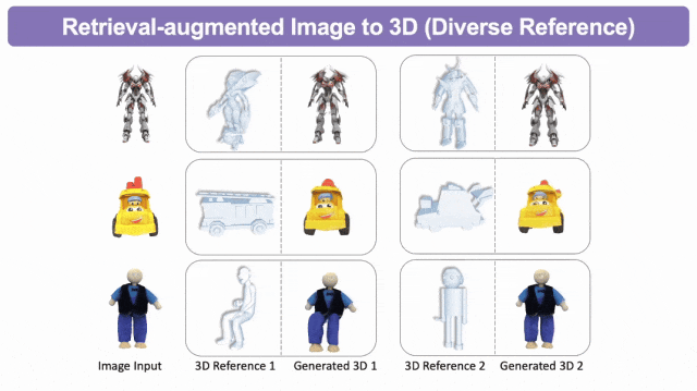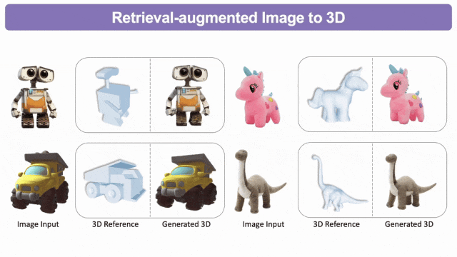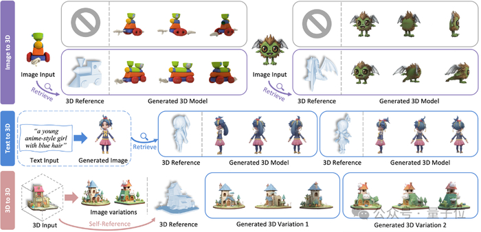 该模型统一了文生3D、图生3D和3D到3D生成等任务,其利用检索到的或用户提供的3D参考模型来指导3D生成过程,从而提高了生成质量、泛化能力和可控性。
