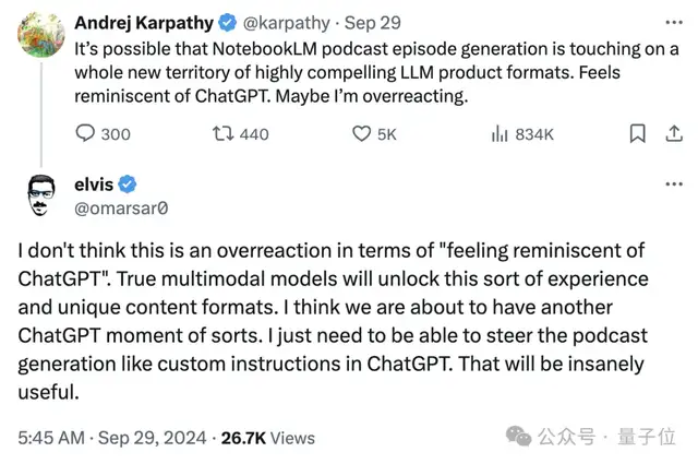 因为交互形式很新、AI语音逼真、讨论起来真的很像真人播客,大家一下就玩嗨了。