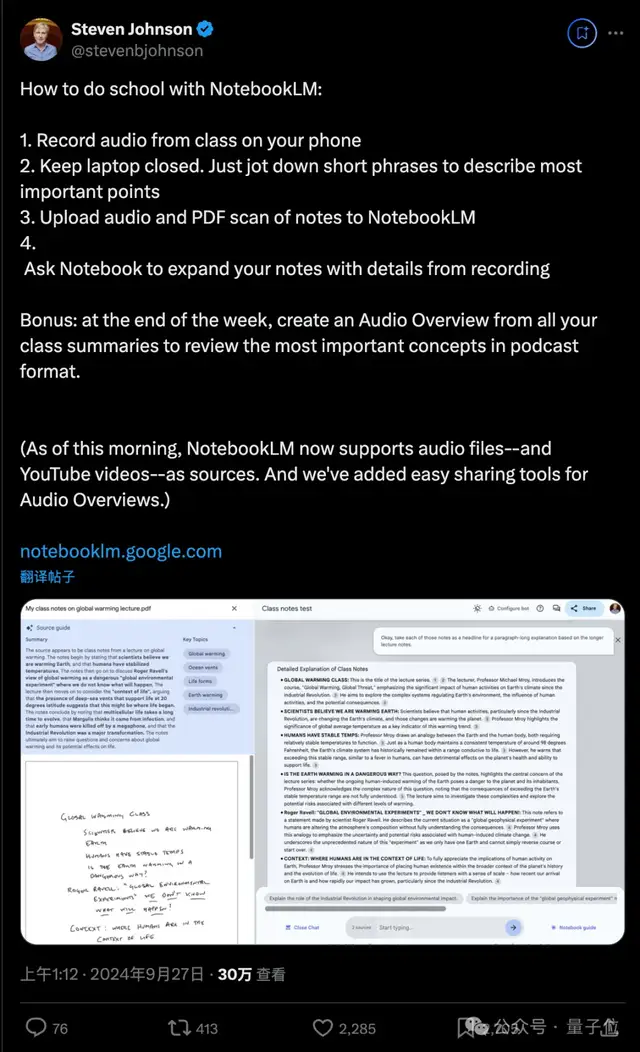 (下课后)把录音和笔记扫描上传到NotebookLM,让它根据录音细节扩写笔记。
