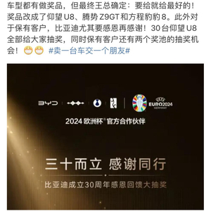 30 周年真情回馈,比亚迪狂抽 60 台新车,最高大奖是仰望 U8