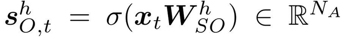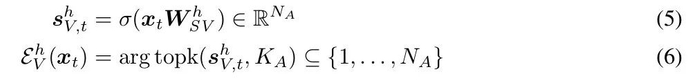 值和输出的选择是独立的。输出的选择使用不同的权重矩阵 W^h_SO ∈ R^d_model× N_A 来类似地计算,即