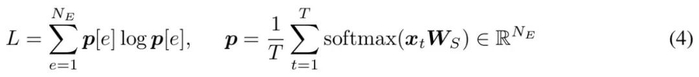 初步实验表明,σ-MoE 的原始正则化往往不稳定,有时会导致训练期间损失激增。为了避免这种情况,研究者仅在序列内应用正则化(而不是批次中的所有 token)。对于输入序列 x_t,t ∈ {1,...,T},计算平衡损失 L 如下所示: