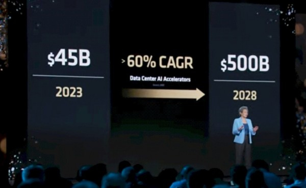短短六个月之后,随着“Antares”MI300A和MI300X加速器的推出,生成式AI热潮迎来了首轮爆发,苏姿丰也再次大幅上调整了对于数据中心AI市值的预测。