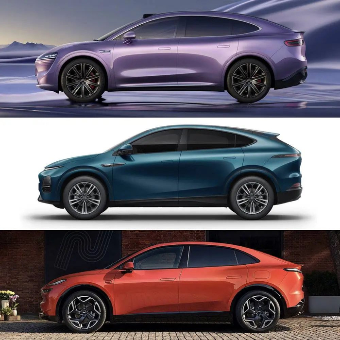 比如,最近很受关注的智界R7、乐道L60、小鹏G6,都很Model Y化,远远看去,几乎都是一个造型。其中的原因也很简单,因为这是不断向风阻系数正确答案妥协的结果。