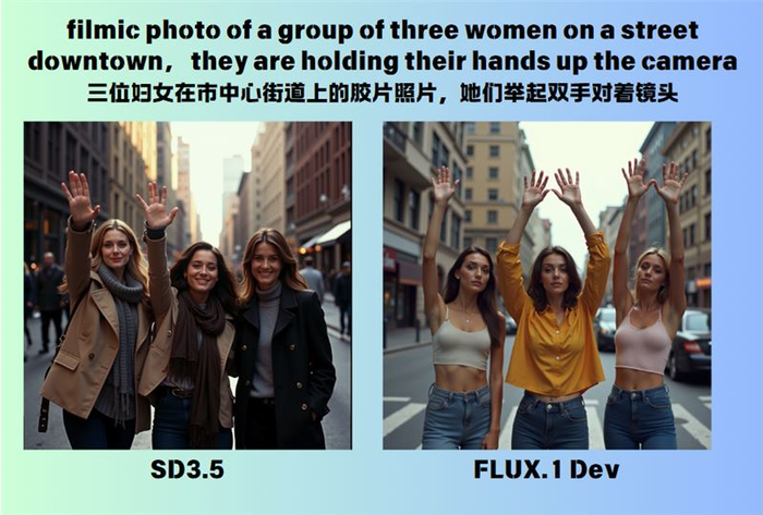 SD3.5这里人物的手还是有问题,可能开发团队也知道这些问题,所以藏手的情况会比FLUX更明显一点