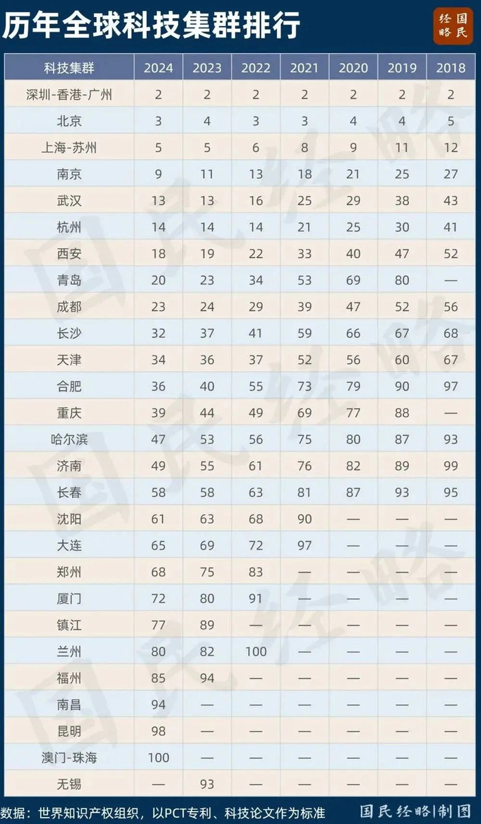 日前,世界知识产权组织(WIPO)发布2024年全球科技集群百强榜,“深圳-香港-广州”集群连续5年蝉联全球第二、中国第一,北京、上海-苏州分列第三、第五。