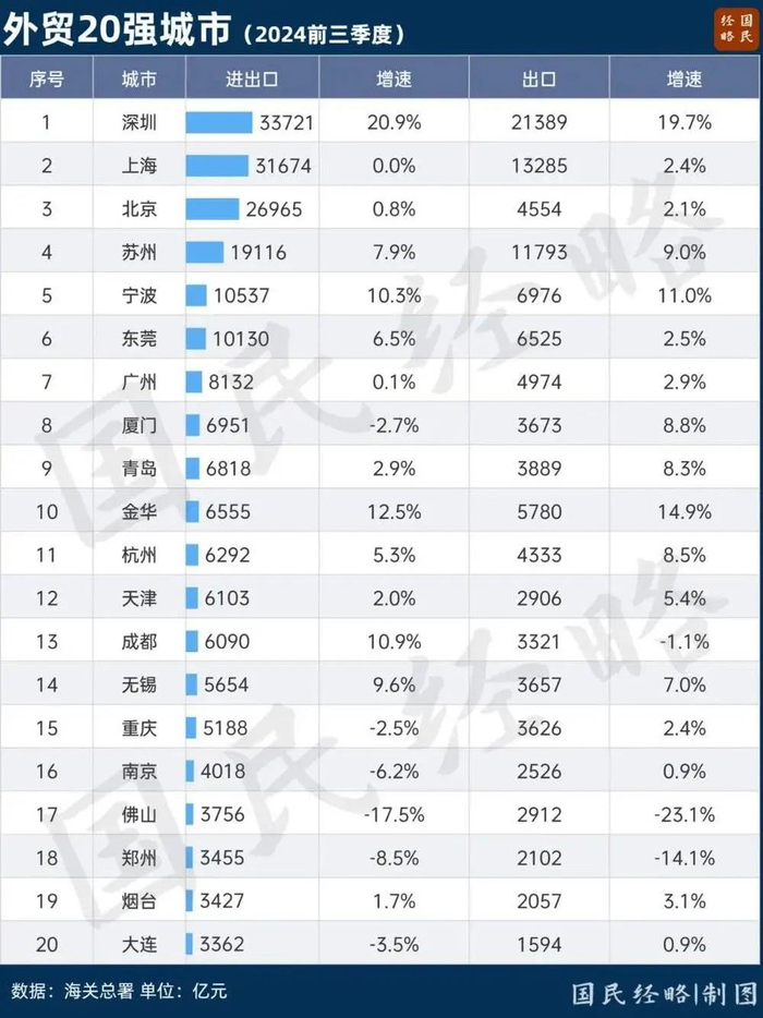 全国外贸10强城市,广东占了3席,而深圳今年超过上海,跃居全国外贸第一大市,拿下外贸、出口双料第一大市之位。