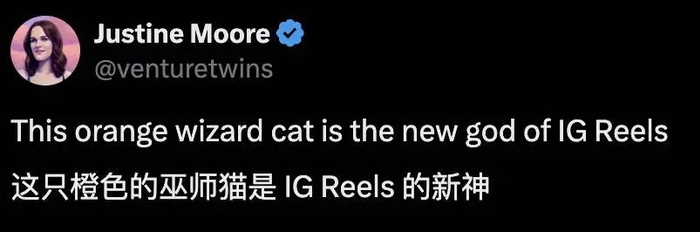 硅谷知名投资机构 a16z 合伙人、专做 AI 公司投资的 Justine Moore 也给予了高度评价,说巫师猫是 Instagram 短视频的新顶流。