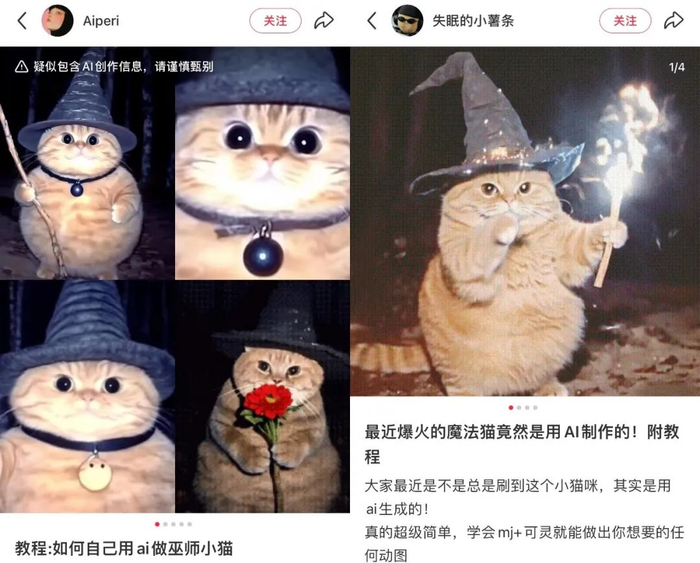 热衷方法论的小红书用户们,则教你怎么用 AI 制作巫师猫,授人以鱼不如授人以渔。