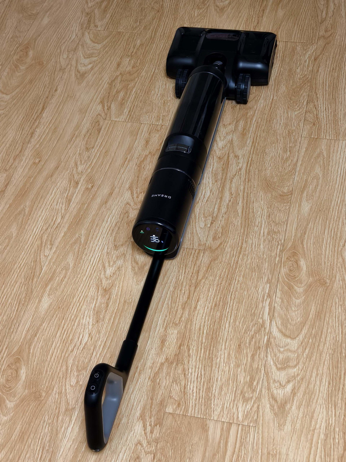 追觅 T40 Ultra 的 LED 屏幕位于机身主机顶部,也是手柄区域的正下方,用于显示电量状态、清洁模式等信息。