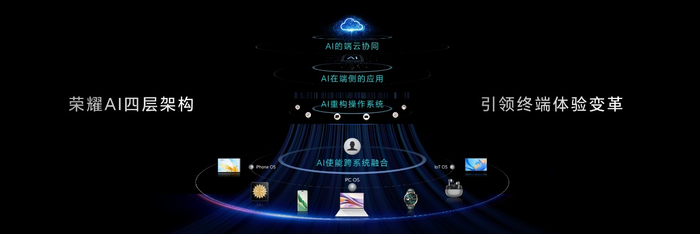 早在2016年,荣耀便以前瞻性的布局,从系统底层开始构建全面的AI技术优势。从第一代荣耀Magic系列智能手机搭载荣耀Magic Live智慧引擎,到2018年荣耀Magic第二代启用自进化、自学习的智慧生命体YOYO,再到2022年底发布AI使能的个人化全场景操作系统MagicOS 7.0,荣耀在AI技术的探索上从未停歇。2023年,荣耀更是首次提出将AI大模型引入端侧,进一步推动了AI技术在智能手机领域的应用。2024年,荣耀首次提出AI的四层架构,为智能终端的发展提供了清晰的路径。如今,随着荣耀Magic7系列的发布,荣耀YOYO智能体再次实现了端侧AI的创新叠加效应和用户体验增值,标志着智能手机行业正式迈入智能体时代。