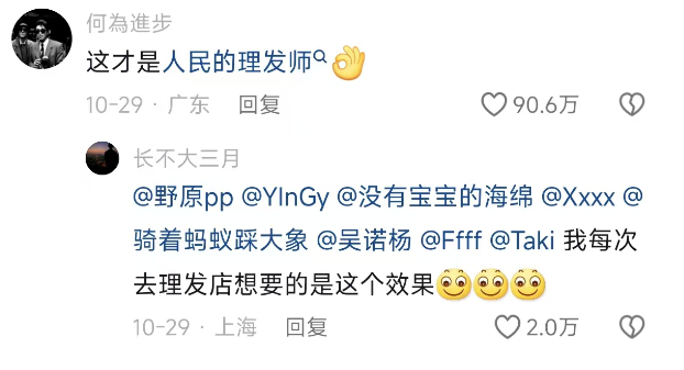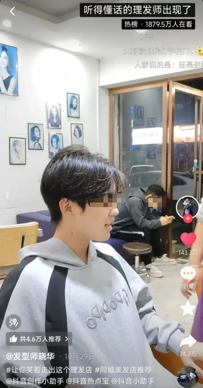最早是上周的一条有关 “ 笑着走出这个理发店 ” 的理发视频,博得千万网友互动点赞。