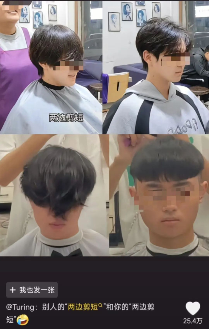 先别急,沉住气,这个实力也不少见,咱知道,剪头发最难的就是,顾客的一句 “ 剪短一点 ” 。