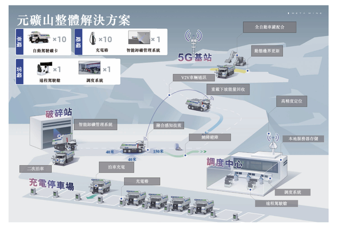 根据公司此前介绍,元矿山能够从挖掘机装载、矿产运输、破碎站卸载到停车场充电一整套流程全部实现了无人化。