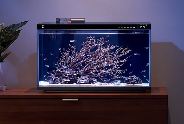 米家智能鱼缸采用一体化整机集成,到家装水即可养鱼,包括水泵、灯光、喂食器、缸体、过滤系统、温感探头。这款智能鱼缸拥有 5 重专业级分仓模块背滤系统,搭配自清洁专利防堵水泵,减少换水频率。