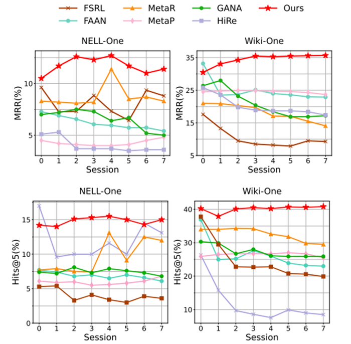 模型在少样本学习方面显示了出色的性能,特别是在快速适应未见关系的新学习环境中。