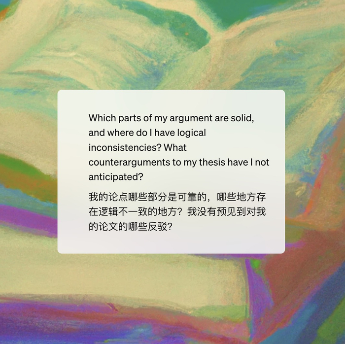 - 好处:学生可以请求ChatGPT挑战自己的逻辑,发现论文论点中的薄弱环节,从而提高论证的严密性。
