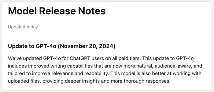 重磅!GPT-4o升级到最新版本1120,重回榜首,API同步更新!