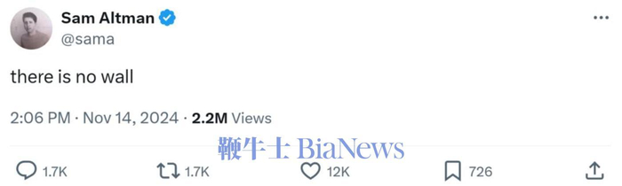 尽管,后面山姆.奥特曼亲自下场辟谣:没有墙。微软AI主管Mustafa Suleyman也表示,不会有任何放缓。