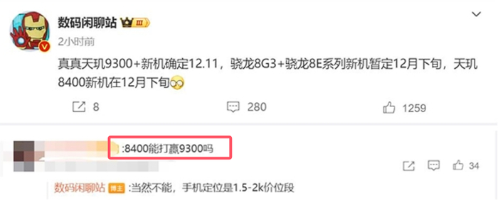 整体规格很高,但微博 @数码闲聊站 表示:过不了天玑 9300。
