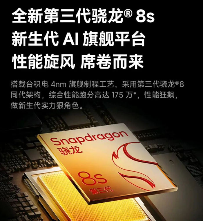 按照惯例,红米 Turbo3 搭载了骁龙 8s Gen3 平台,而作为迭代机型的 Turbo 4 就应该搭载骁龙 8s Elit 新平台。
