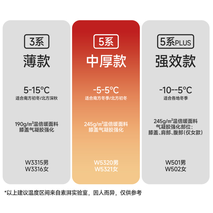 男女款都有,版型设计修身显瘦,如果是南方的朋友,穿不到太厚的保暖衣,所以给大家准备了3系和5系两款: