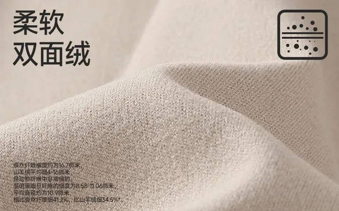 同时,保暖衣还专门做了特殊的双面绒结构,让面料外层密实防寒。
