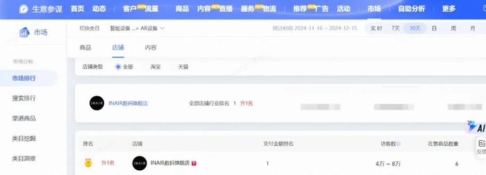 天猫近 30 天,INAIR 创下 AR 类目销售额第一!