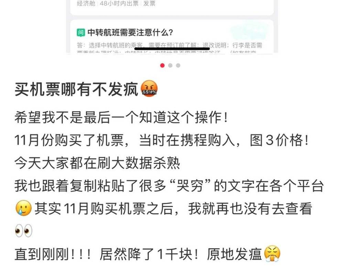 毕竟旅游出行平台,向来就是杀熟行为的重灾区,特别是机票,但凡多看一眼,价格就会爆炸。