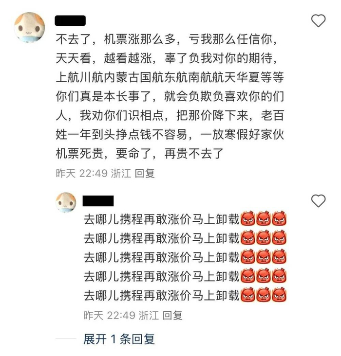 导致一时之间,处处开始出现网友们骂机票价格的留言。